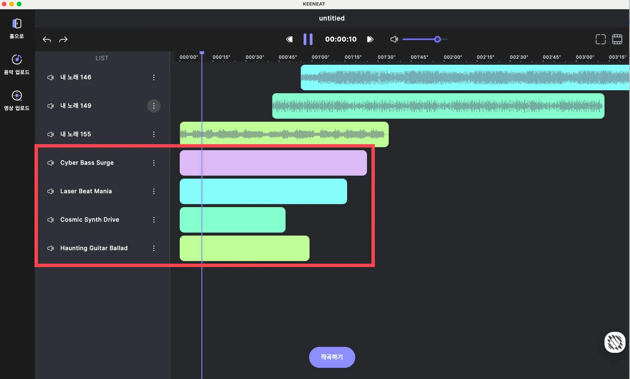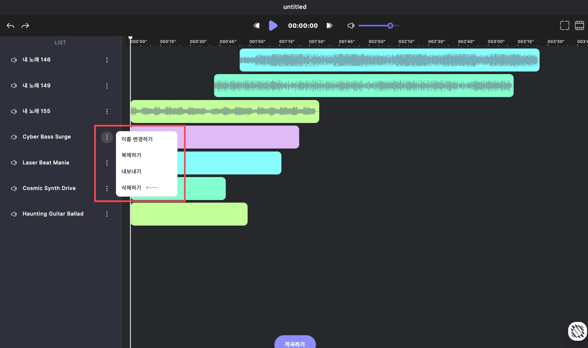 위의 이미지와 같이 로딩이 완료된 이후에도 음악의 파형이 불러와지지 않는 음악은 손실된 음악으로 재생할 수 없습니다.