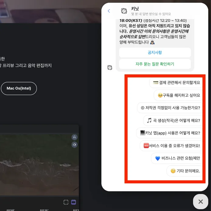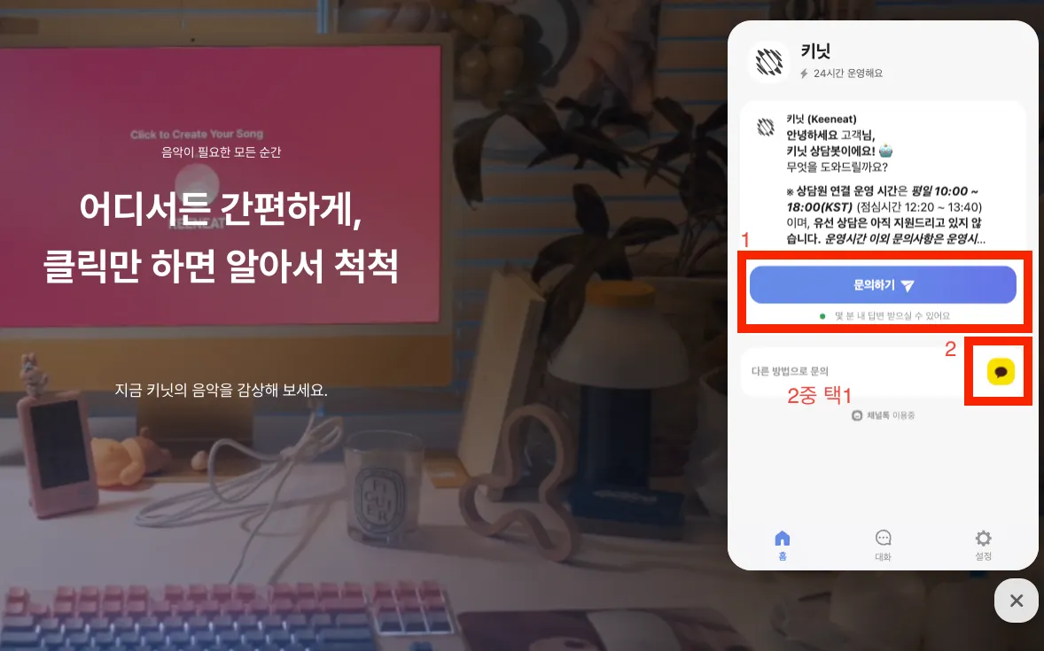 현재 키닛의 상담 문의는 키닛 내 채널톡을 통해서만 가능합니다.