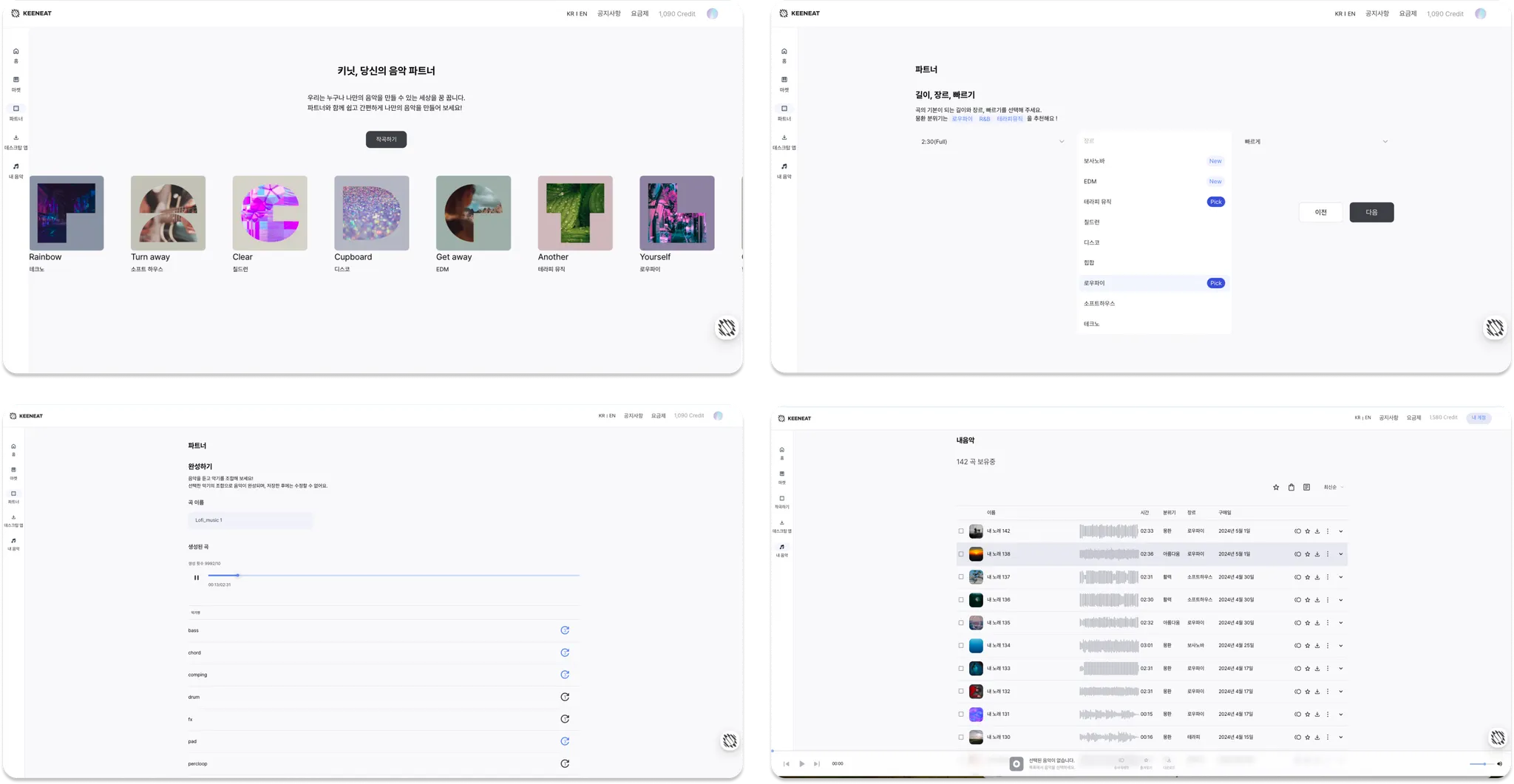 키닛 유튜브 채널을 방문하시면, AI와 작곡가들이 협력하여 만든 [KEENEAT VOLUME PROJECT 앨범]과 AI 플레이리스트 등, 키닛을 활용한 작품도 감상할 수 있어요!